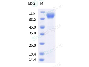 The purity of Recombinant Cynomolgus / Rhesus CD19 Protein,ECD,Fc Tag,HPLC-verified(Cat. No. 90051-C02H)was more than 90% and the molecular weight of this protein is around 161.2 kDa verified by SEC-MALS(Routinely tested). |