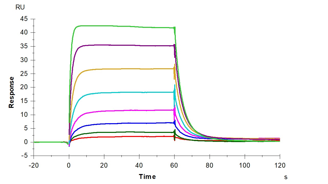 Recombinant Human IL-2R beta/CD122 Protein, mFc Tag (Cat. No. 10696-H05H) captured on CM5 chip via anti-mouse antibodies surface can bind Recombinant Human IL-2 Protein (Cat. No. 11848-HNAE2) with an affinity constant of 0.460 µM as determined in an SPR assay (Biacore T200) (Routinely tested). |