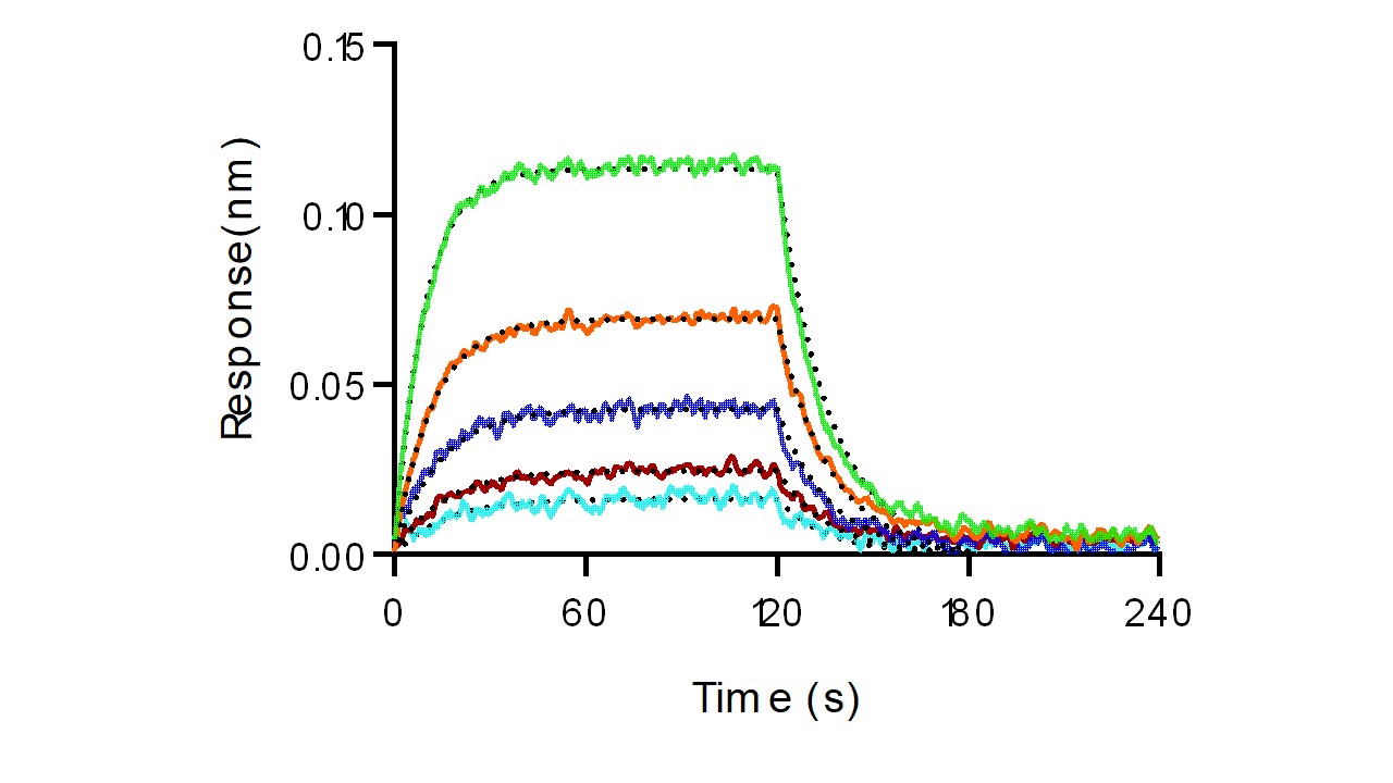Loaded Recombinant Human IL-2R beta/CD122 Protein, hFc Tag (Cat. No. 10696-H02H) on proA Biosensor, can bind Recombinant Human IL-2 Protein (Cat. No. 11848-HNAE2) with an affinity constant of 268 nM as determined in BLI assay (Sartorius Octet RED384) (Routinely tested). |