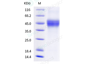 molecular mass of the protein is approximately 45-54 kDa in SDS-PAGE