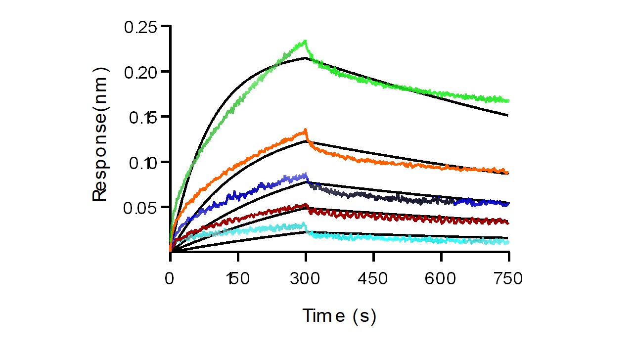 Loaded Recombinant Human IL-2 Protein (Cat. No. 11848-HNAE2) on AR2G Biosensor, can bind Recombinant Human IL-2R beta/CD122 Protein, mFc Tag (Cat. No. 10696-H05H) with an affinity constant of 0.367 μM as determined in BLI assay (Sartorius Octet RED384) (Routinely tested). |