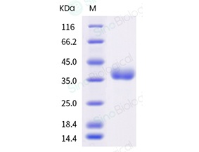 extracellular domain (Met 1-Asp 239) with five amino acids (DDDDK) at