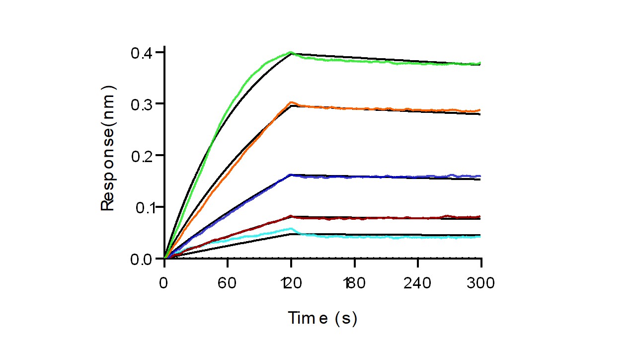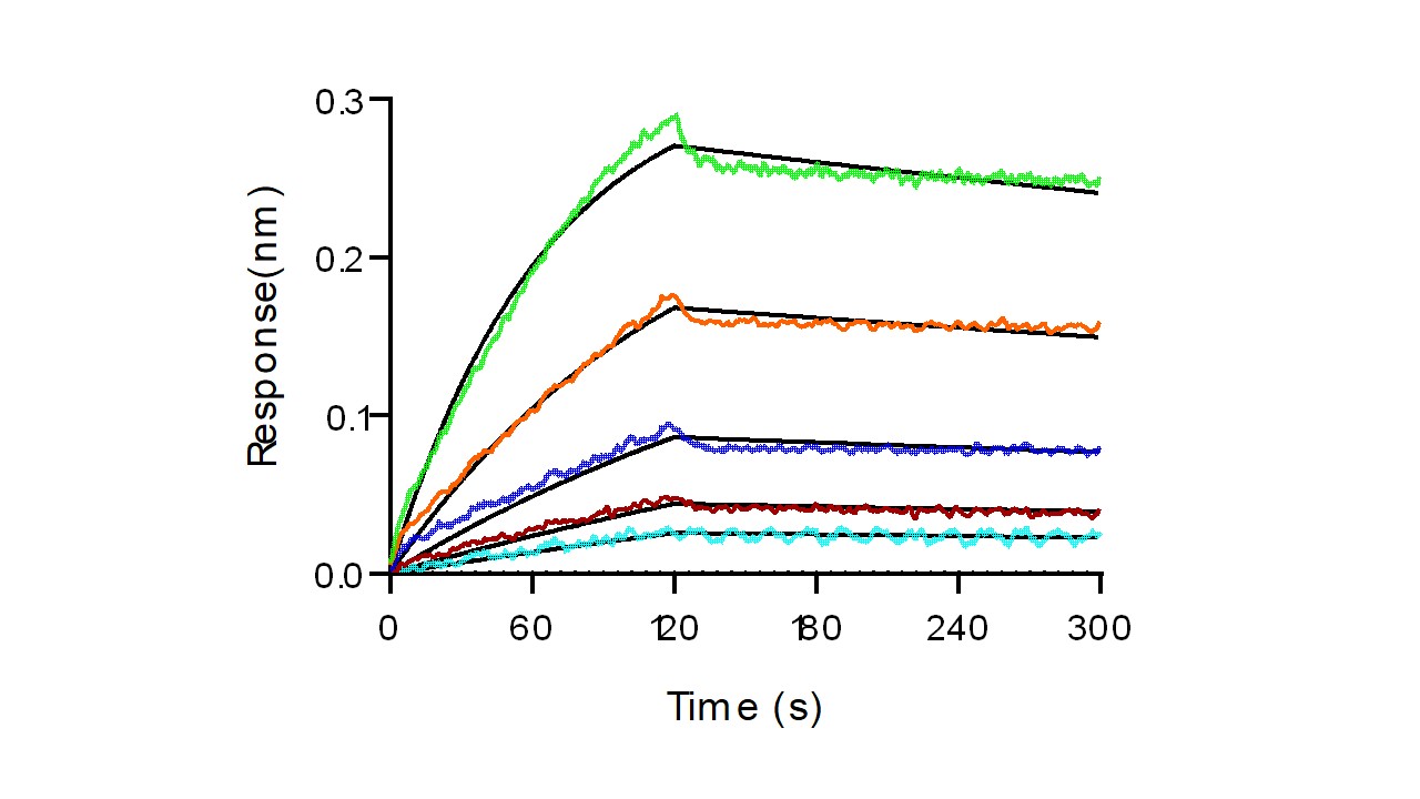 2.Loaded Biotinylated Recombinant Human IL-2Rβ & IL-2Rγ Protein, Flag & AVI & His Tag (Cat. No. CT108-H2549H1-B) on SA Biosensor, can bind Recombinant Human IL-2 Protein (Cat. No. 11848-HNAH1-E) with an affinity constant of 1.210 nM as determined in BLI assay (Sartorius Octet RED384) (QC tested).