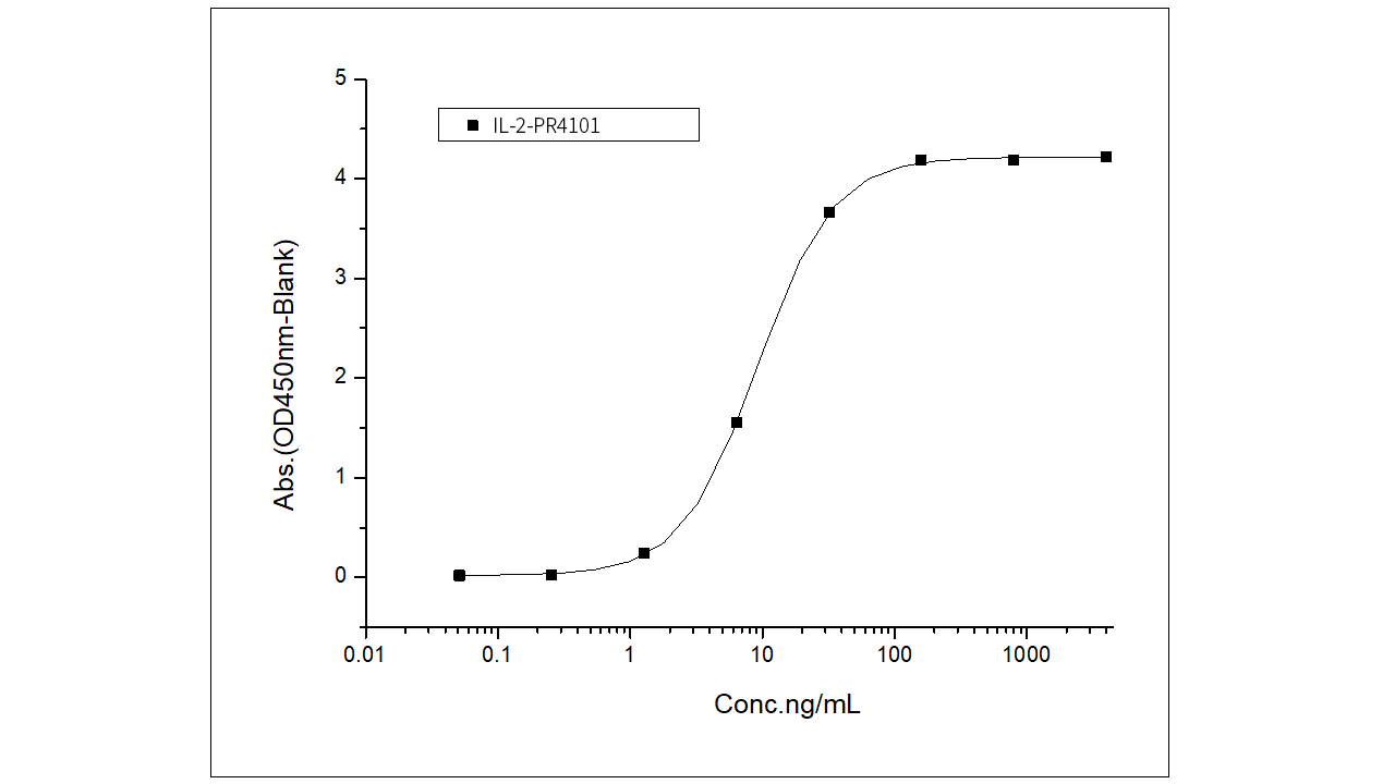 Immobilized Recombinant Rat CD25 / IL-2R alpha Protein (ECD, His & AVI Tag), Biotinylated (Cat: 80074-R49B-B ) at 2 μg/mL (100 μl/well) on streptavidin precoated (2 μg/mL, 100 μL/well) can bind Recombinant Human IL2 Protein, Low Endotoxin (Cat: 11848-HNAH1-E), the EC50 is 5-15 ng/mL. |