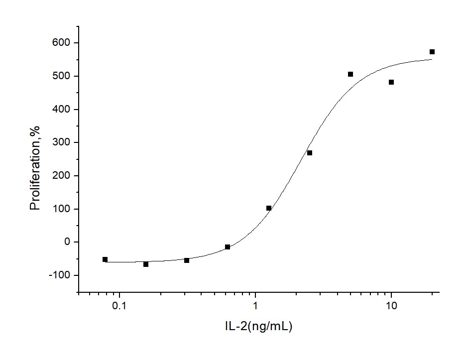 Measured in a cell proliferation assay using anti-CD3 antibody activated human peripheral blood mononuclear cell (PBMC). The ED50 for this effect is typically 0.5-8 ng/mL. The specific activity of Recombinant Human IL-7 is >100,000 units/μg, which is calibrated against the human IL-7 reference standard (NIBSC code: 90/530). |
