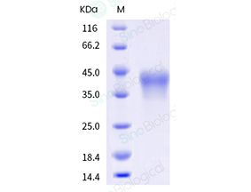 The recombinant cynomolgus IL2RA comprises 199 amino acids and has a calculated molecular mass of 22.4 KDa.The apparent molecular mass of the protein is approximately 38-42 KDa respectively in SDS-PAGE.